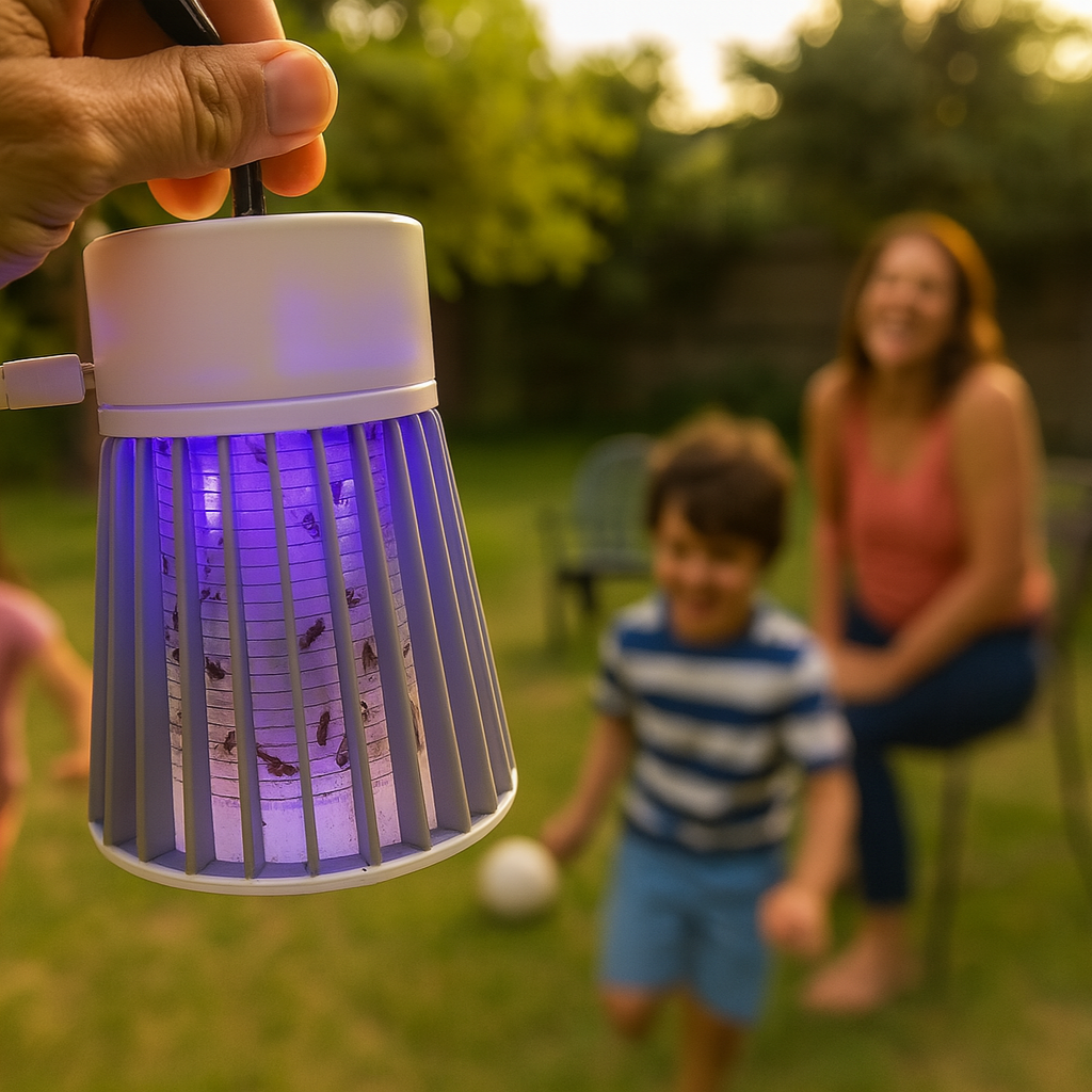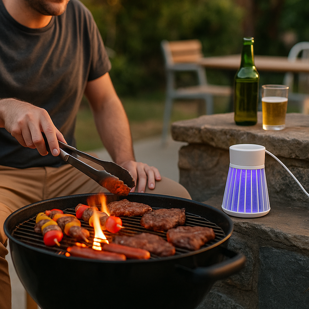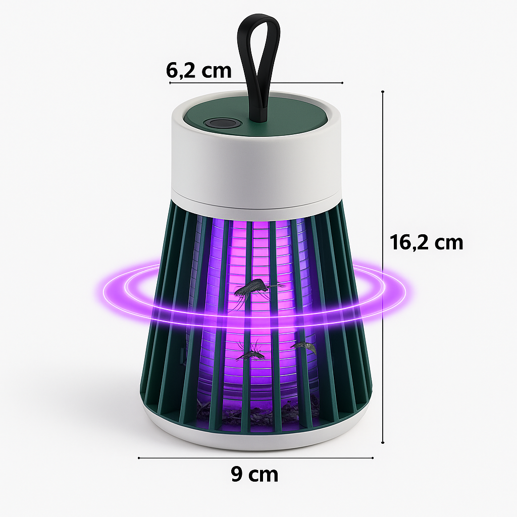Essa tecnologia exclusiva simula o calor e o cheiro do corpo humano, atraindo os mosquitos de forma precisa e eliminando eles com um choque ao entrarem nas grades protegidas.